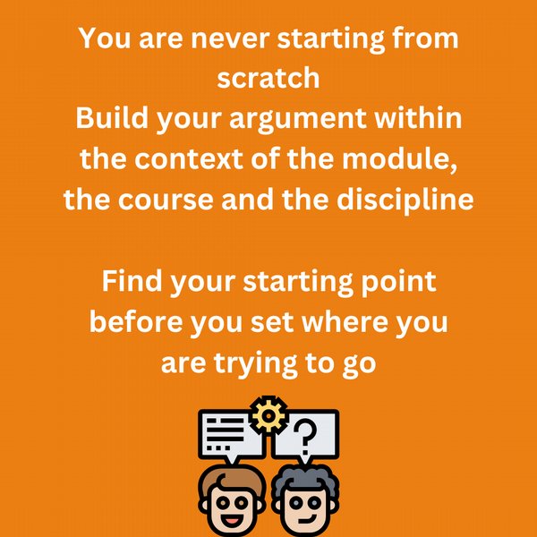 In this workshop, we consider how to both understand and build arguments in your discipline, and why that is the foundation of everything else that you will do as a student. Rather than approaching this as a set of rules to be learned, the session will offers a set of questions that you can use to approach your own course and develop your own skills in argumentation, whatever context you find yourself in.