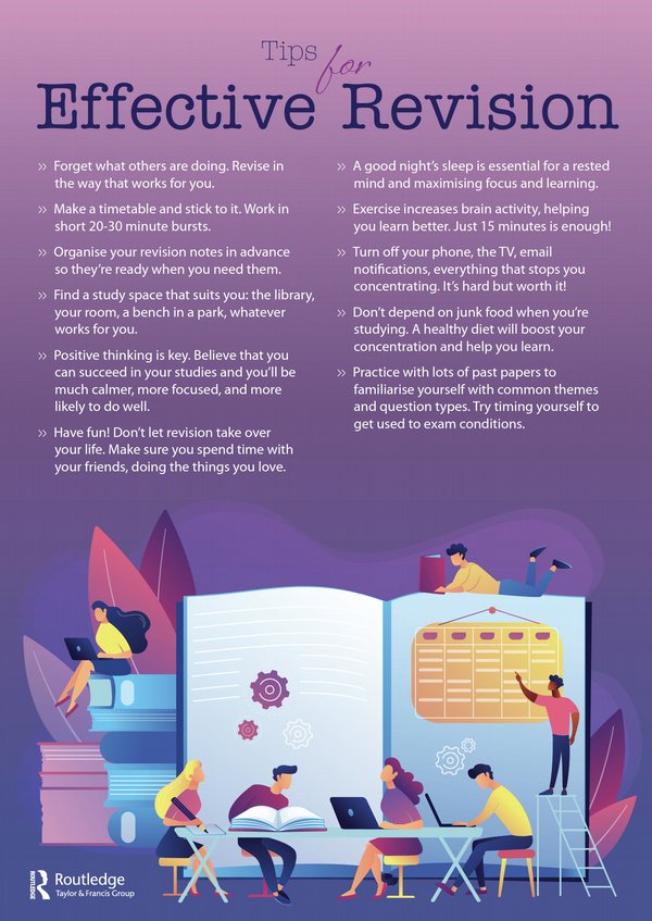 • Have fun! Don't let revision take over your life. Make sure you spend time with your friends, doing the things you love.